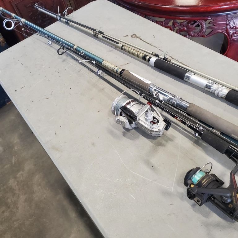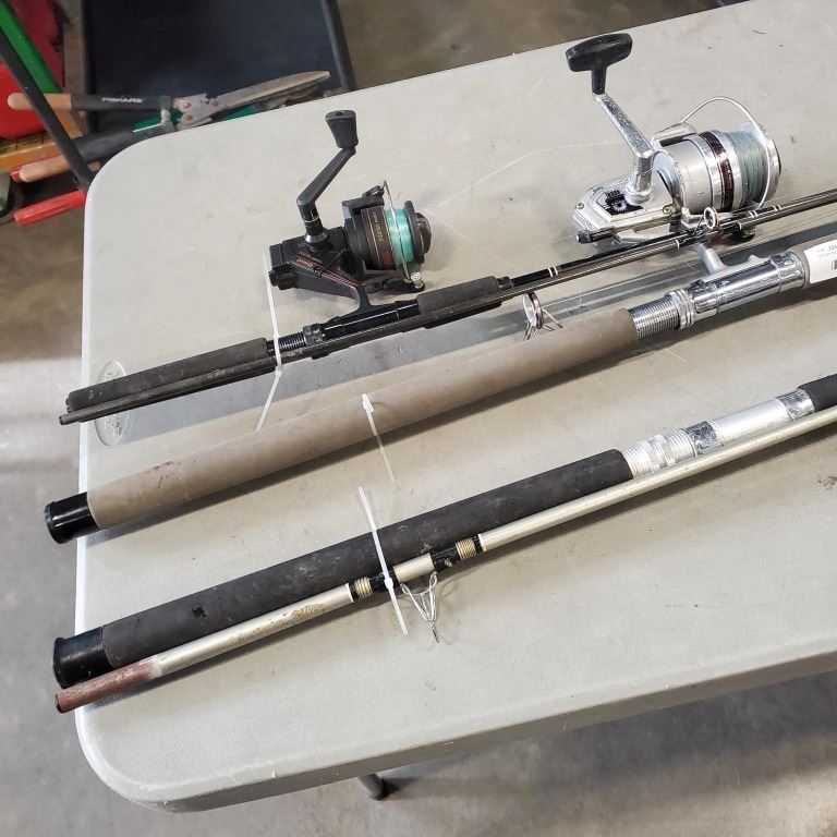 3 FISHING RODS AND REELS