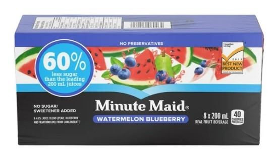 3 FLATS OF MINUTEMAID WATERMELON BLUEBERRY JUICE BOXES - 9 PACKS OF 8 JUICE BOXES, BEST BEFORE JULY 10/24
