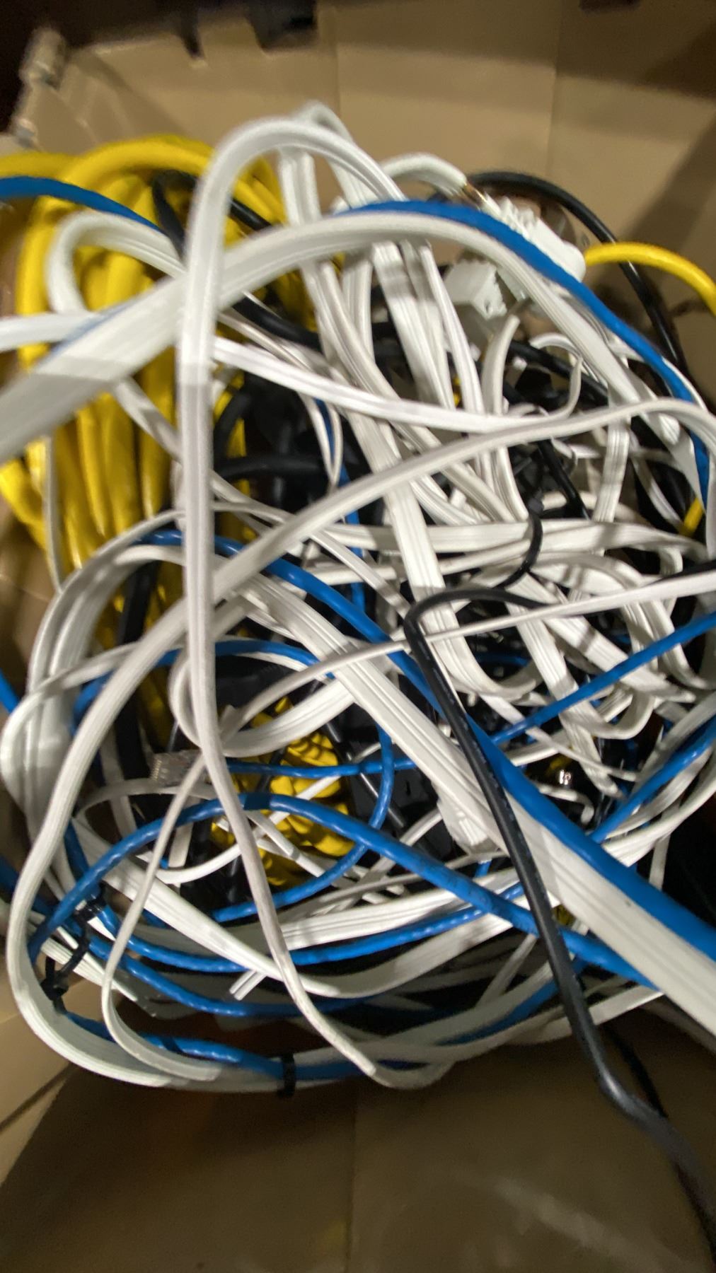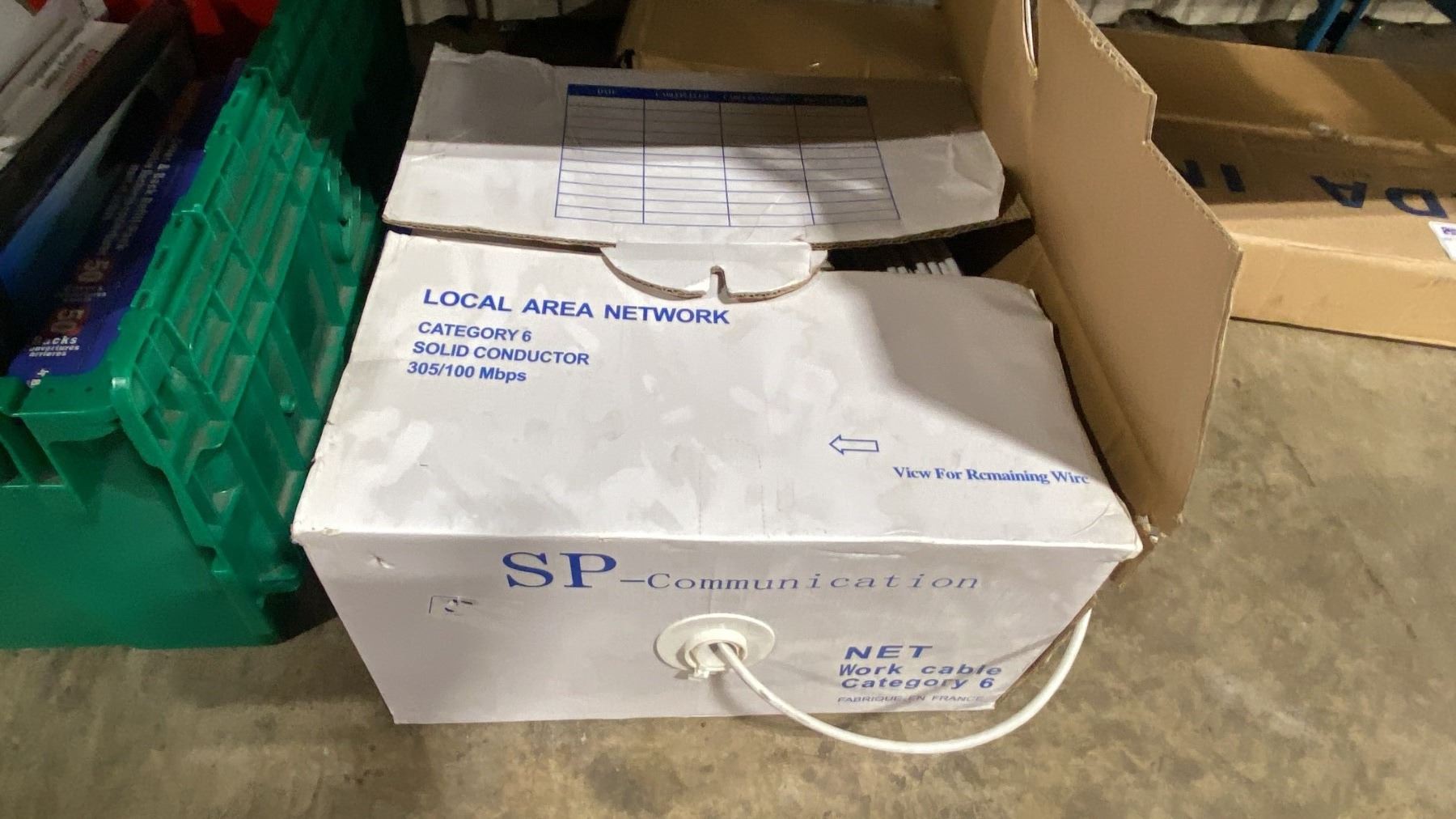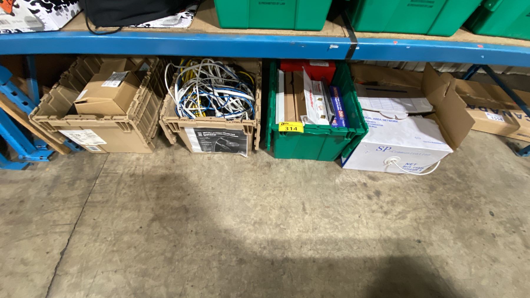 3 FOLD TOP BINS OF COMMERCIAL OFFICE PRODUCTS & BOX OF CAT 6 NETWORK CABLE *BINS INCLUDED*