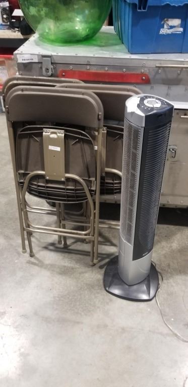 3 FOLDING CHAIRS AND SEVILLE TOWER FAN