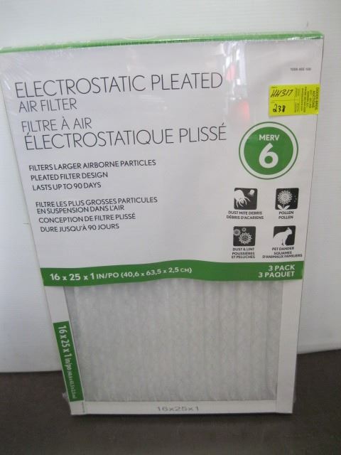 3 FURNACE AIR FILTERS, 16'X25'X1'