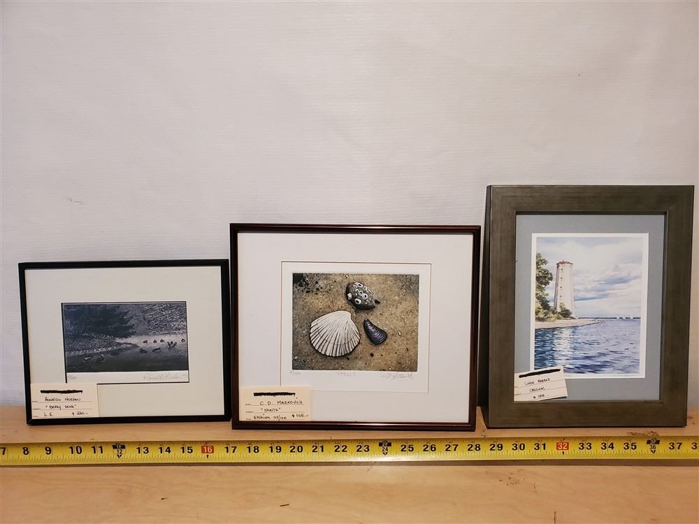 3 Framed number Prints 11/100 "Berry Dove" - 27/100 "Shells' - "Light House" - Most Items have not been tested - Viewing Recommended- 17% Buyer Fee. Payment Processed through Live Auction World ( Visa or Master Card ) pick up Wednesday