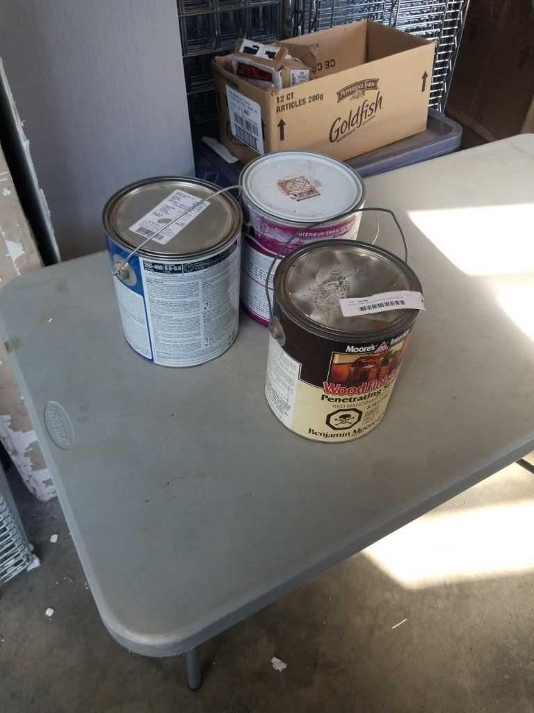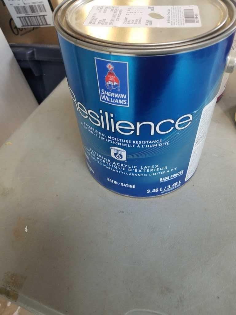 3 GALLONS OF STAIN AND PAINT BEHR INTERIOR EGGSHELL ENAMEL, SHERWIN WILLIAMS EXTERIOR ACRYLIC LATEX