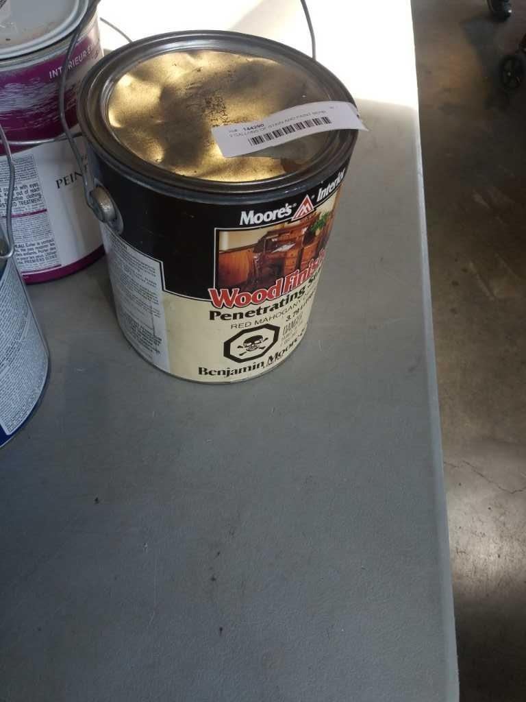 3 GALLONS OF STAIN AND PAINT BEHR INTERIOR EGGSHELL ENAMEL, SHERWIN WILLIAMS EXTERIOR ACRYLIC LATEX AND MOORES PENETRATING STAIN I GALLON OF EACH