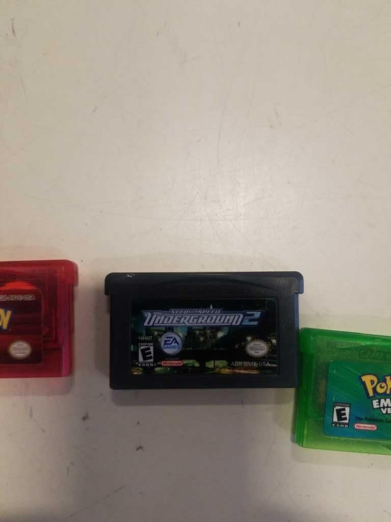 3 GAMEBOY ADVANCE GAMES - POKEMON RUBY AND EMERALD AND NEED FOR SPEED UNDERGROUND 2