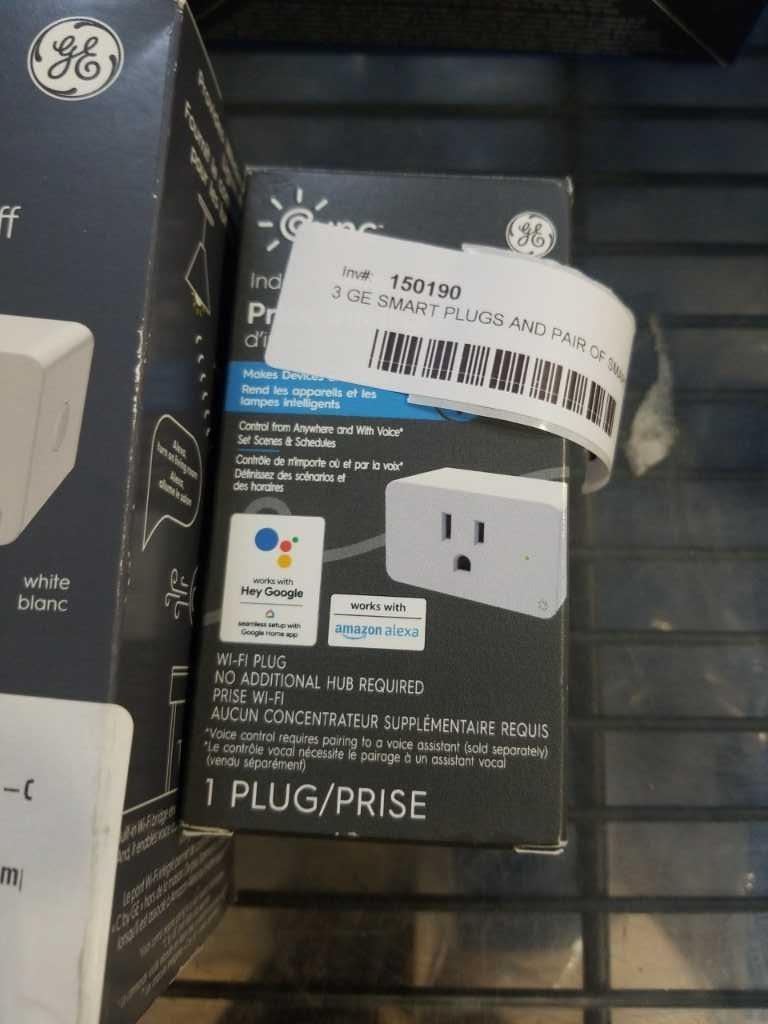 3 GE SMART PLUGS AND PAIR OF SMART BULBS - RETAIL $179