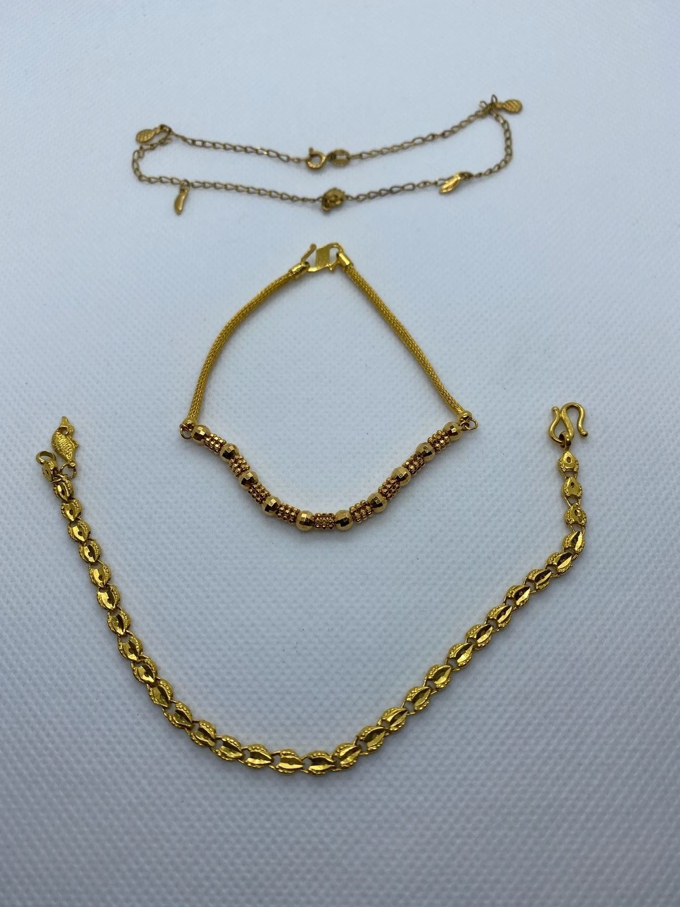 3 GOLD BRACELETS MARKS ON ONE IS PT 9999, AND 916 AND 750