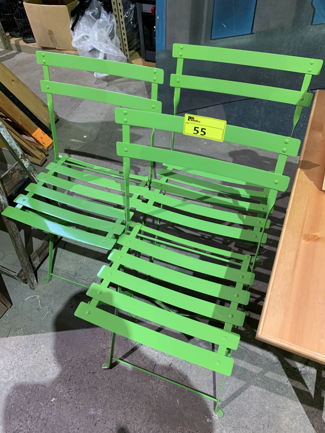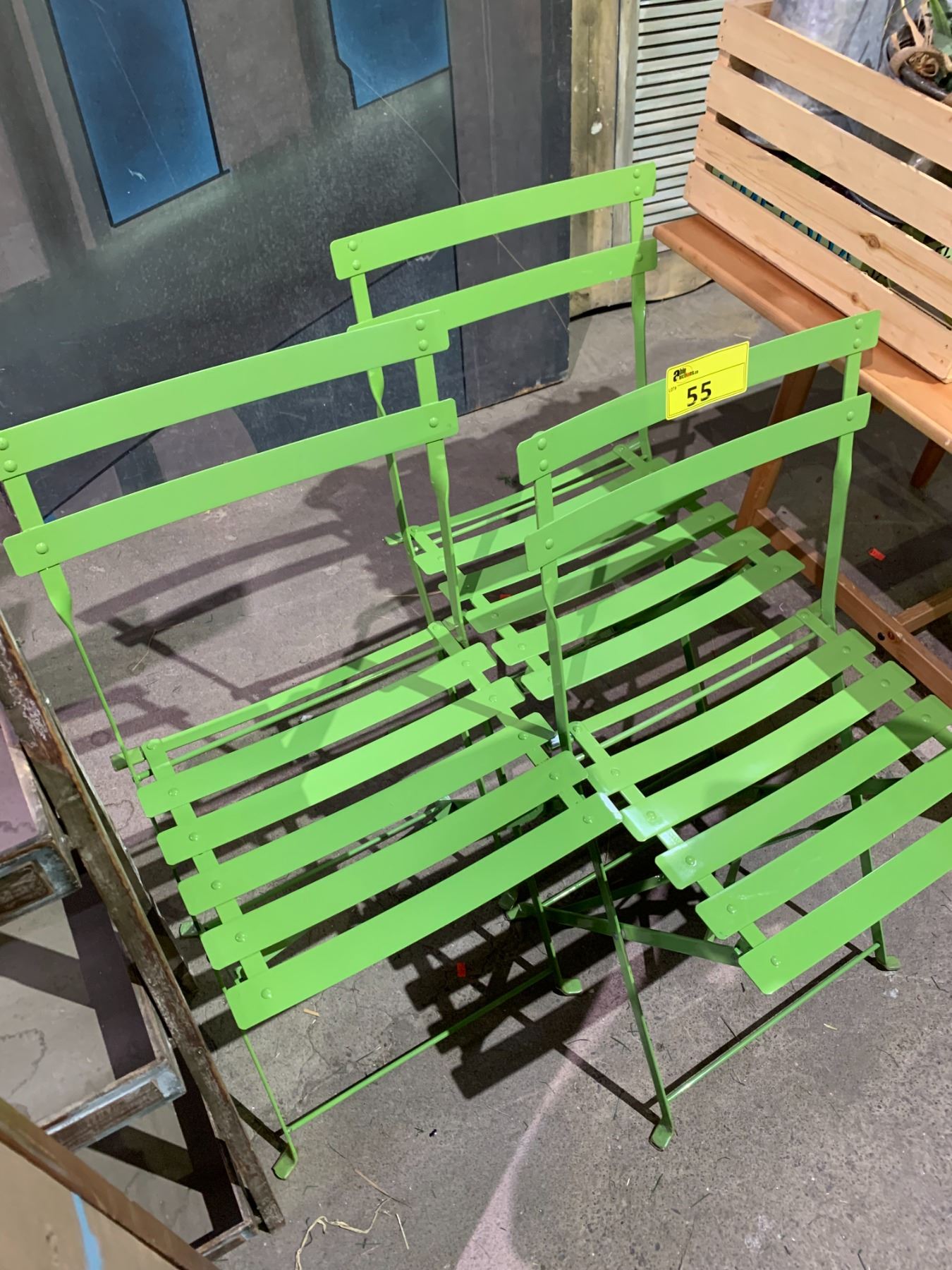 3 GREEN FOLDING OUTDOOR METAL CHAIRS