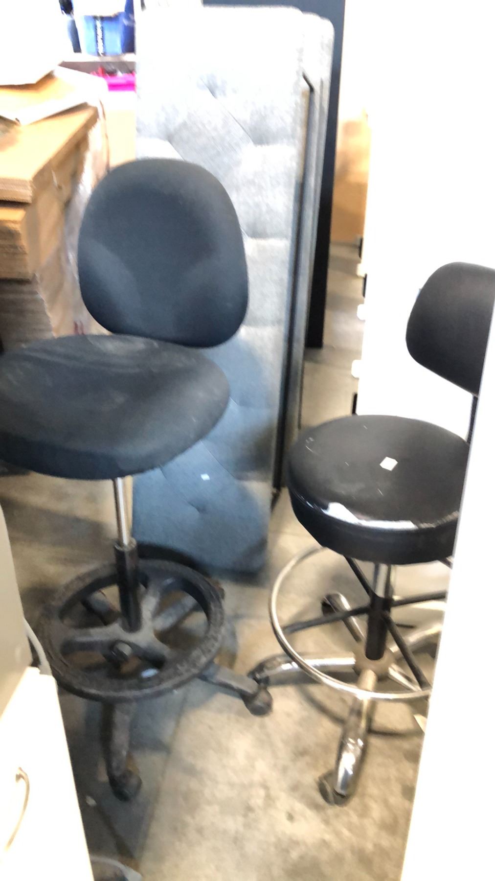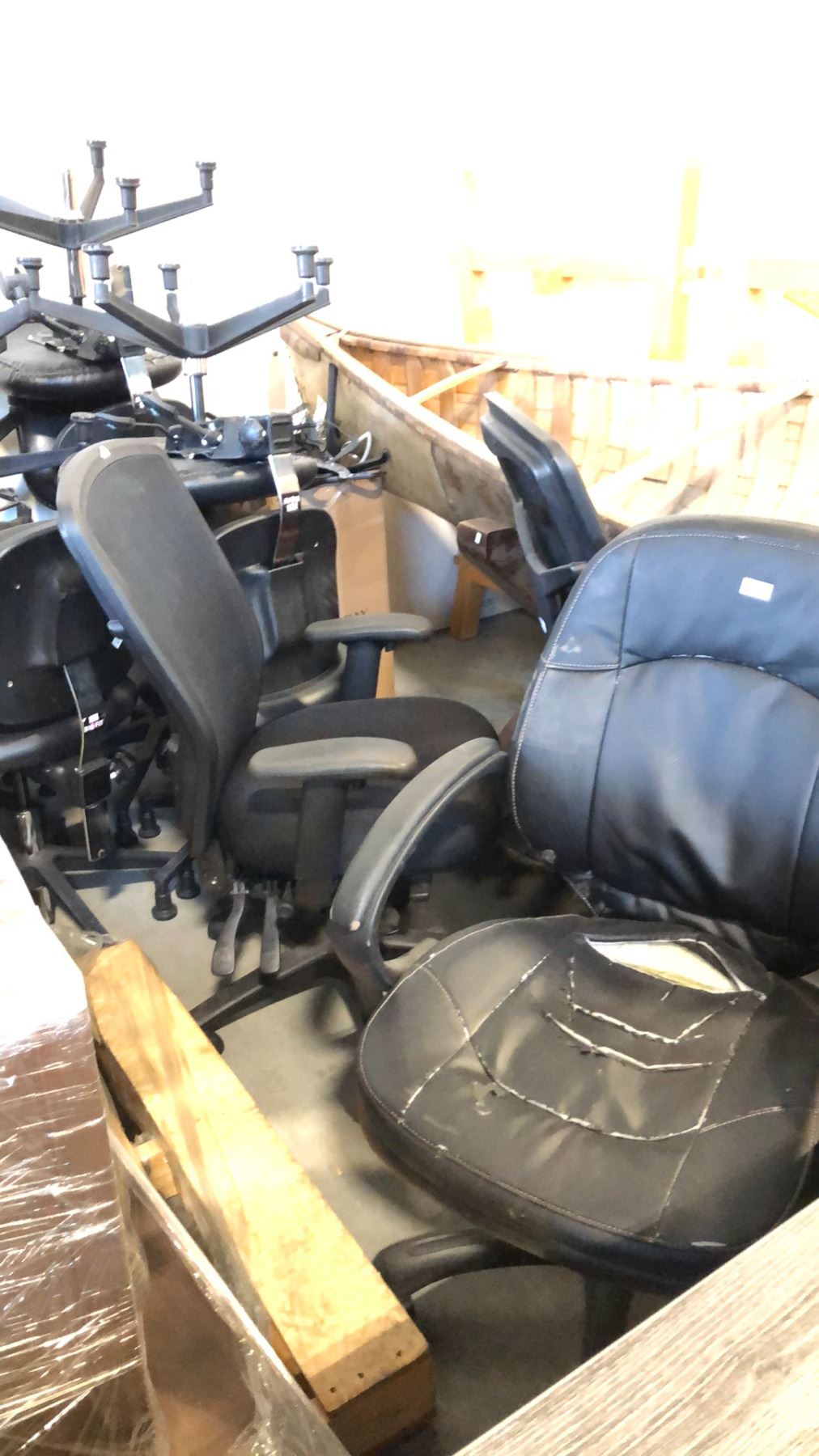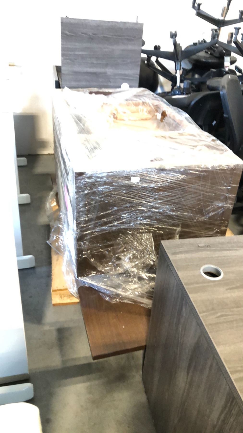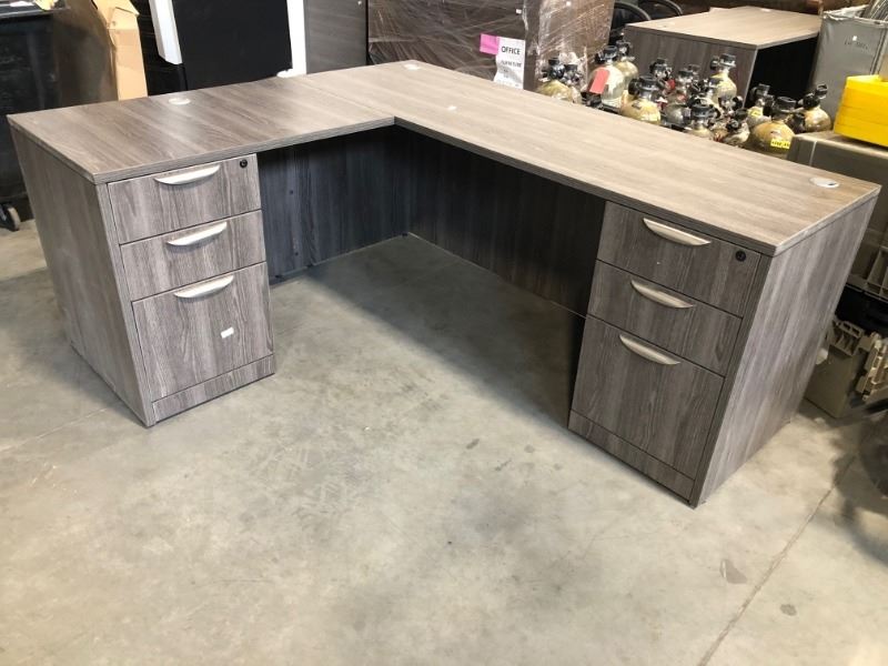 3 GREY, 1 WALNUT OFFICE DESKS AND APPROX. 15 MISC. OFFICE CHAIRS *MUST TAKE ALL* LAST DAY REMOVAL