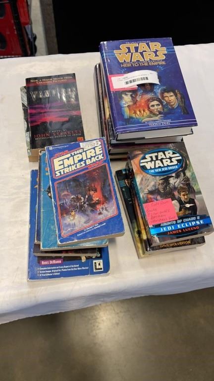 3 HARD COVER STAR WARS BOOKS, 3 BOOK SAGA BY TIMOTHY ZAHN, AND 10 SOFT COVER BOOKS - 8 STAR WARS, BATMAN, AND VAMPIRES