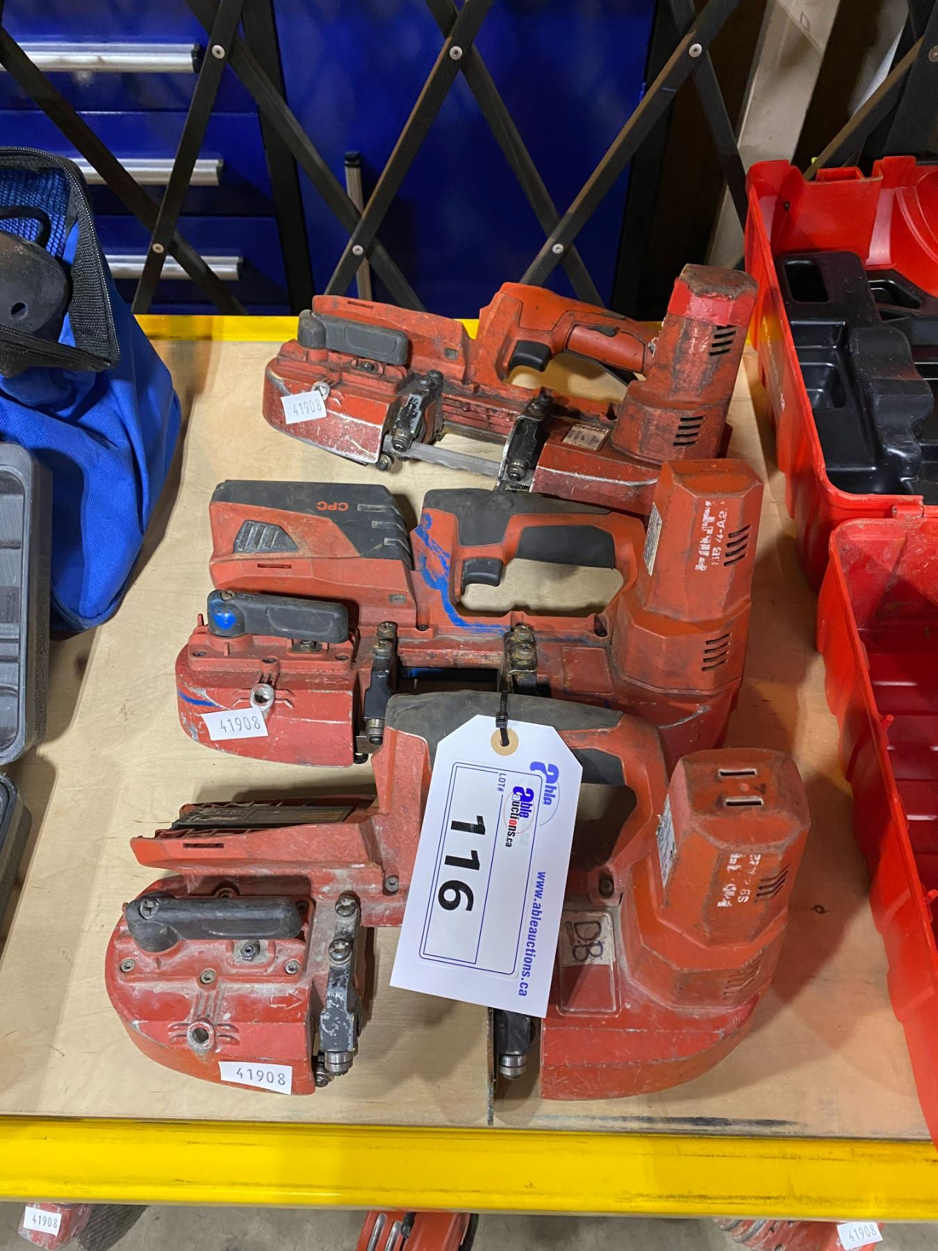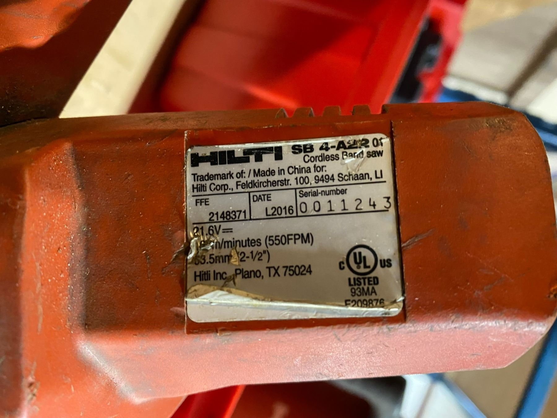 3 HILTI SB 4-A22 CORDLESS PORTABLE BAND SAWS AND 1 BATTERY