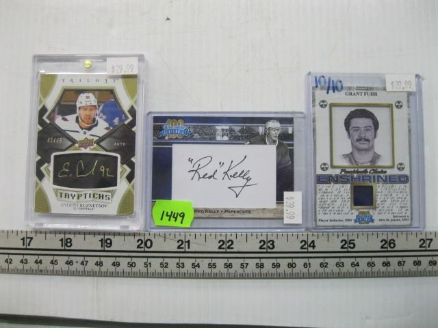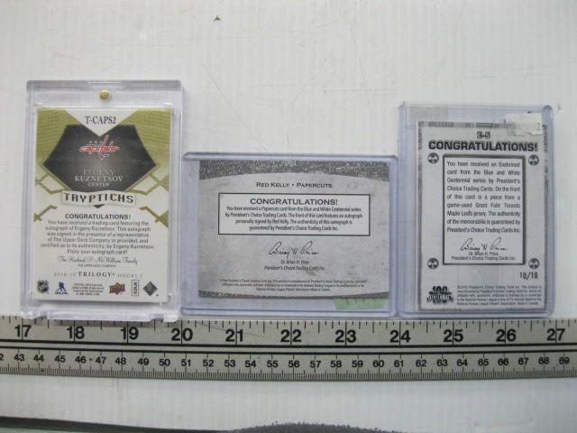 3 HOCKEY CARDS, GRANT FUHR, RED KELLY & EYGENY KUZNETSOV