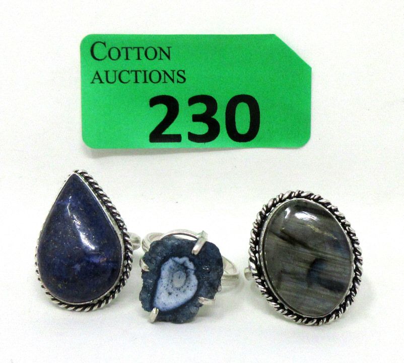 3 Handmade Genuine Gemstone Rings - Stamped .925