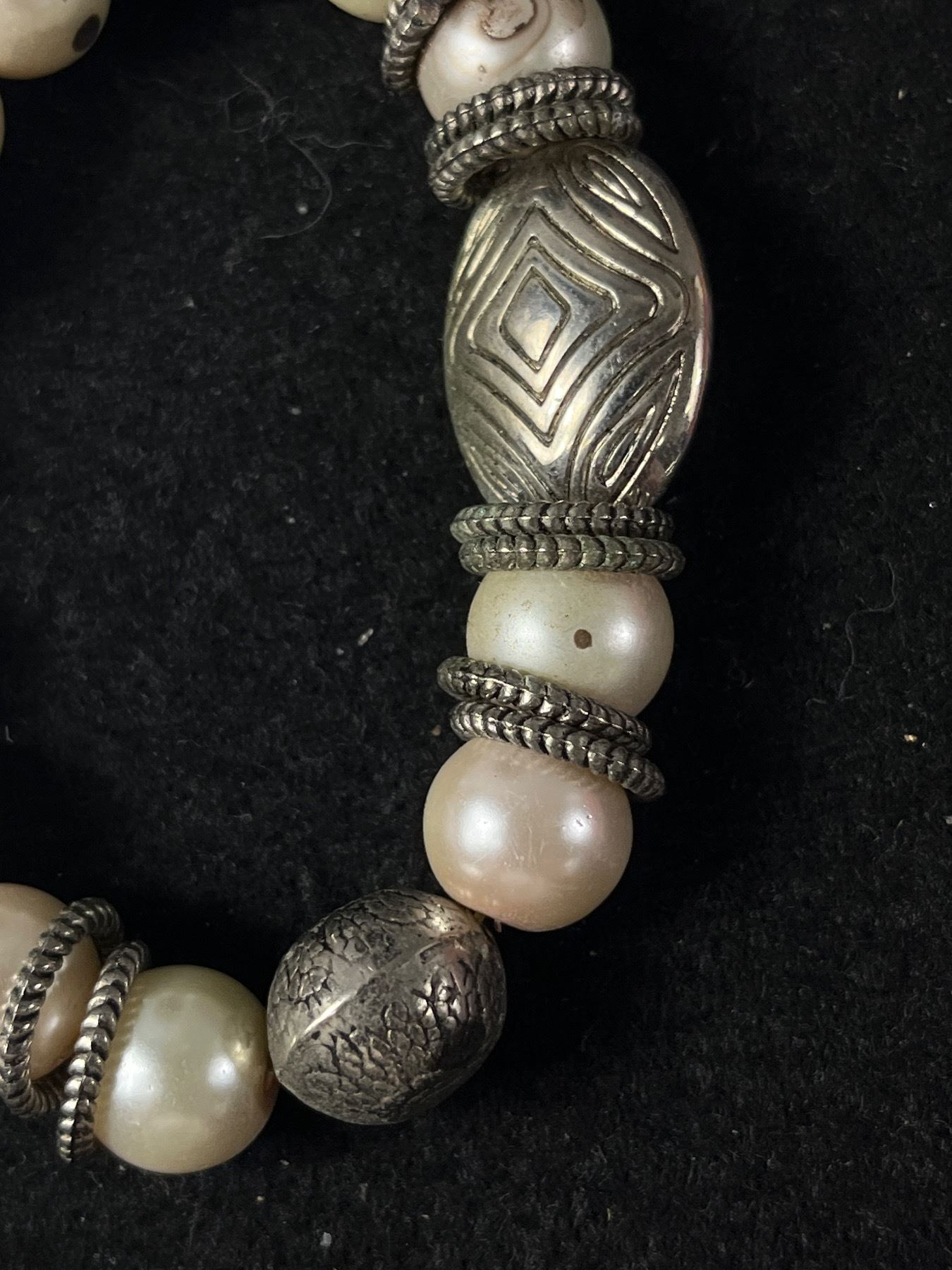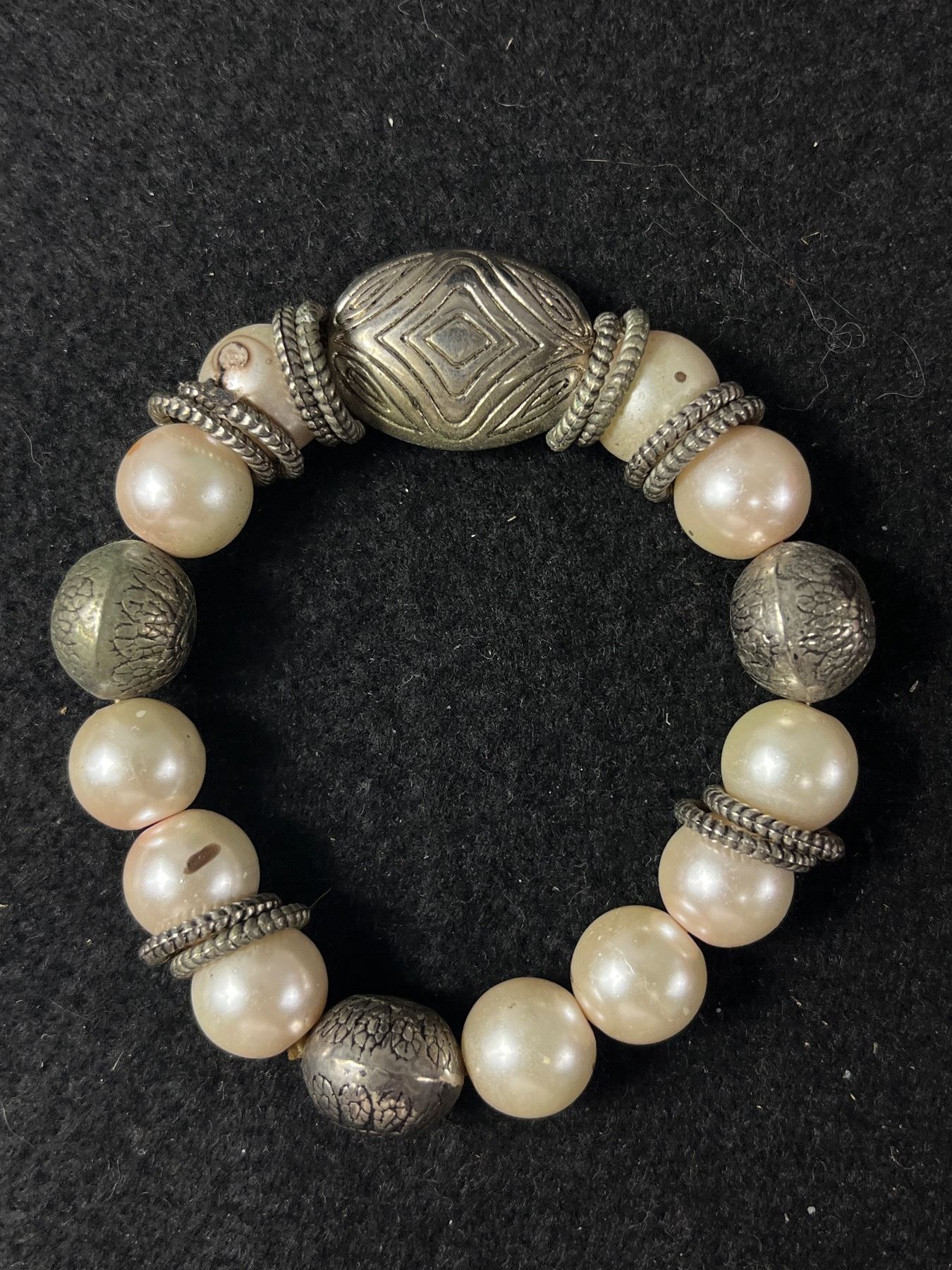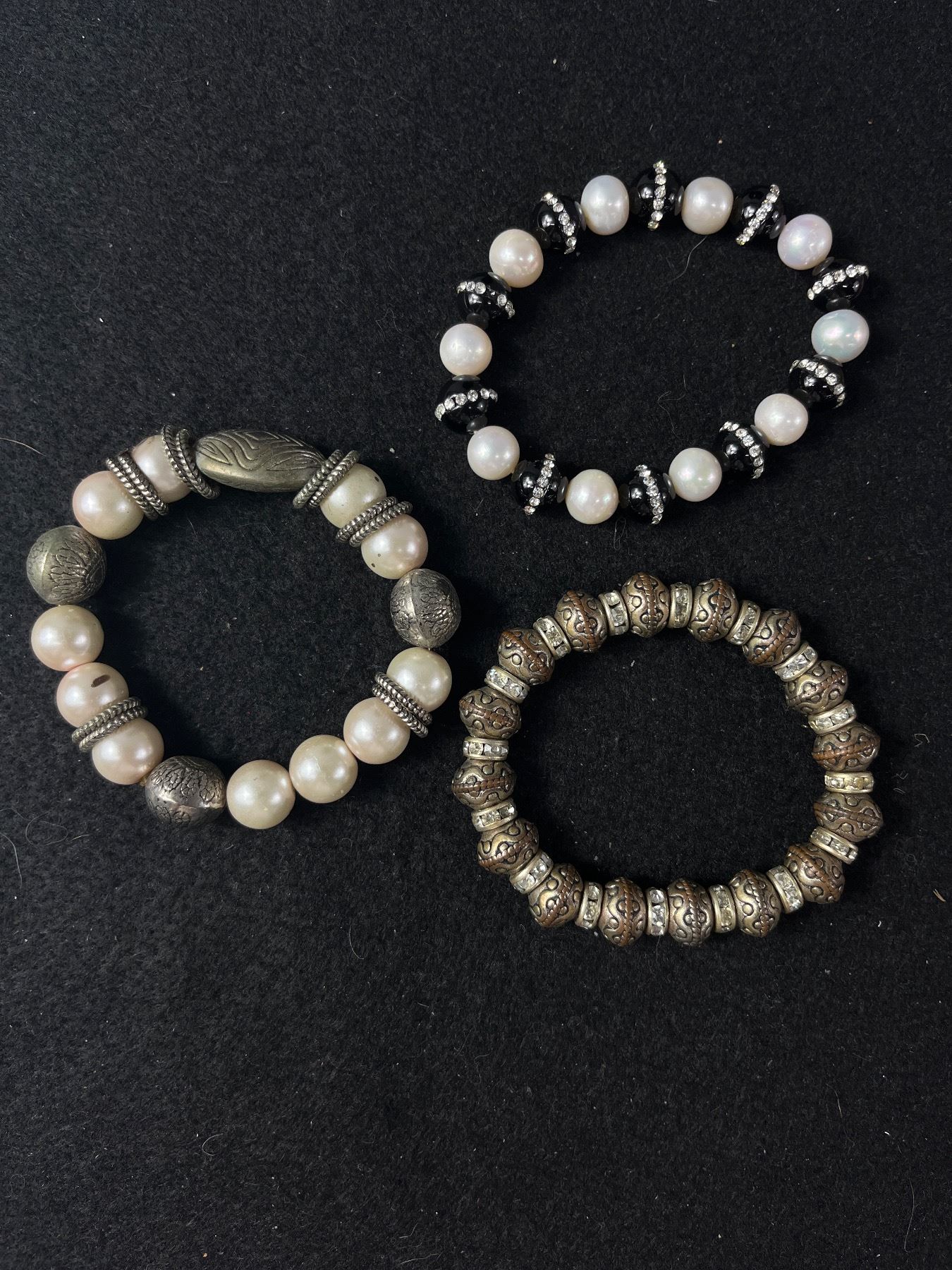 3 Heavy & Solid Silver Beads & Pearls Stretch Bracelets, All Good To Wear