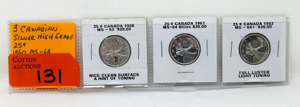 1960 (MS-63), 1961 (MS-64), and 1962 (MS-64+).