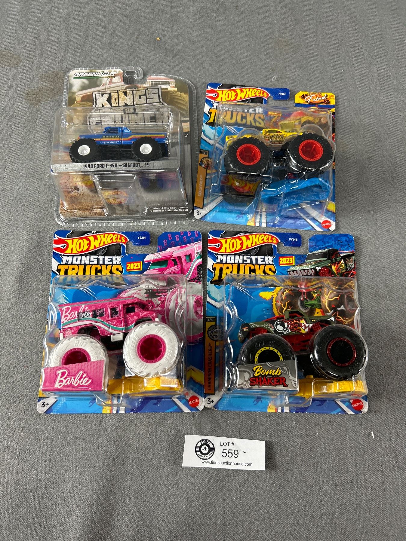 3 HotWheels Monster Trucks & 1 Greenlight Kings Of Crunch Die-Cast Vehicles In Original Package