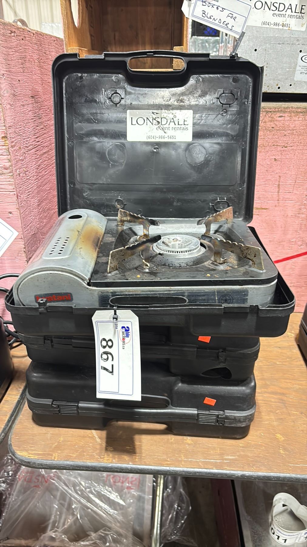 3 IWATANI ZA-3HP 12,000 BTU PORTABLE BUTANE STOVES IN HARD TRANSPORT CASES