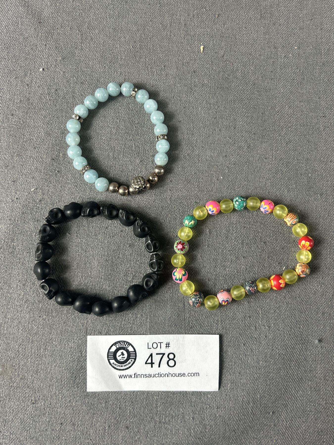 3 Interesting Beaded Glass/Stones Stretch Bracelets