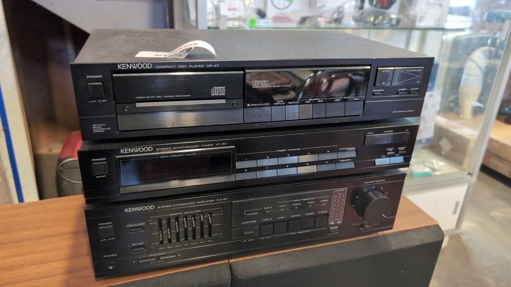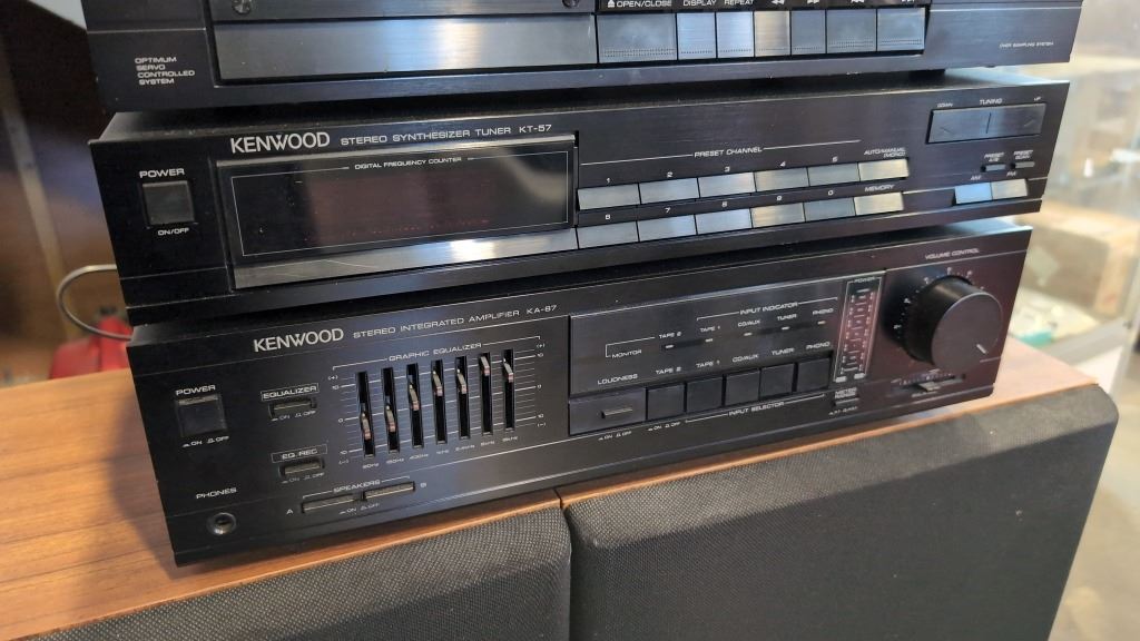 3 KENWOOD STEREO COMPONENTS AND PAIR OF JL-670 FLOOR SPEAKERS