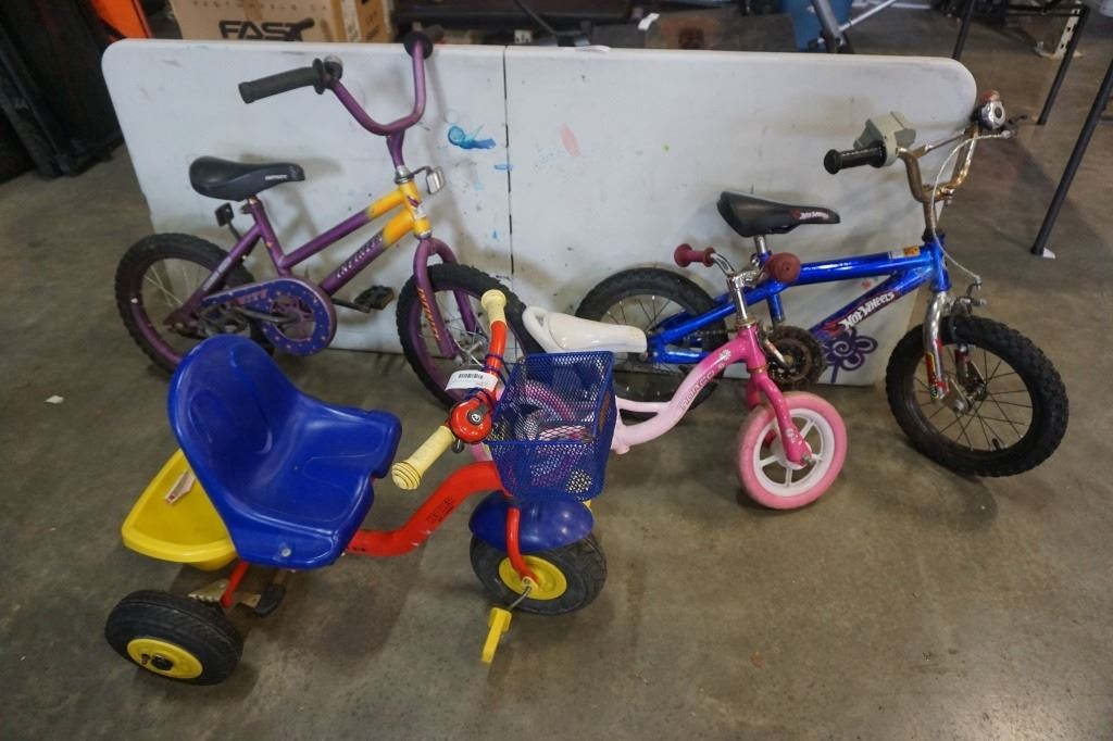 3 KIDS BIKES AND KETTLER TRICYCLE WITH RUBBER AIR FILLED TIRES