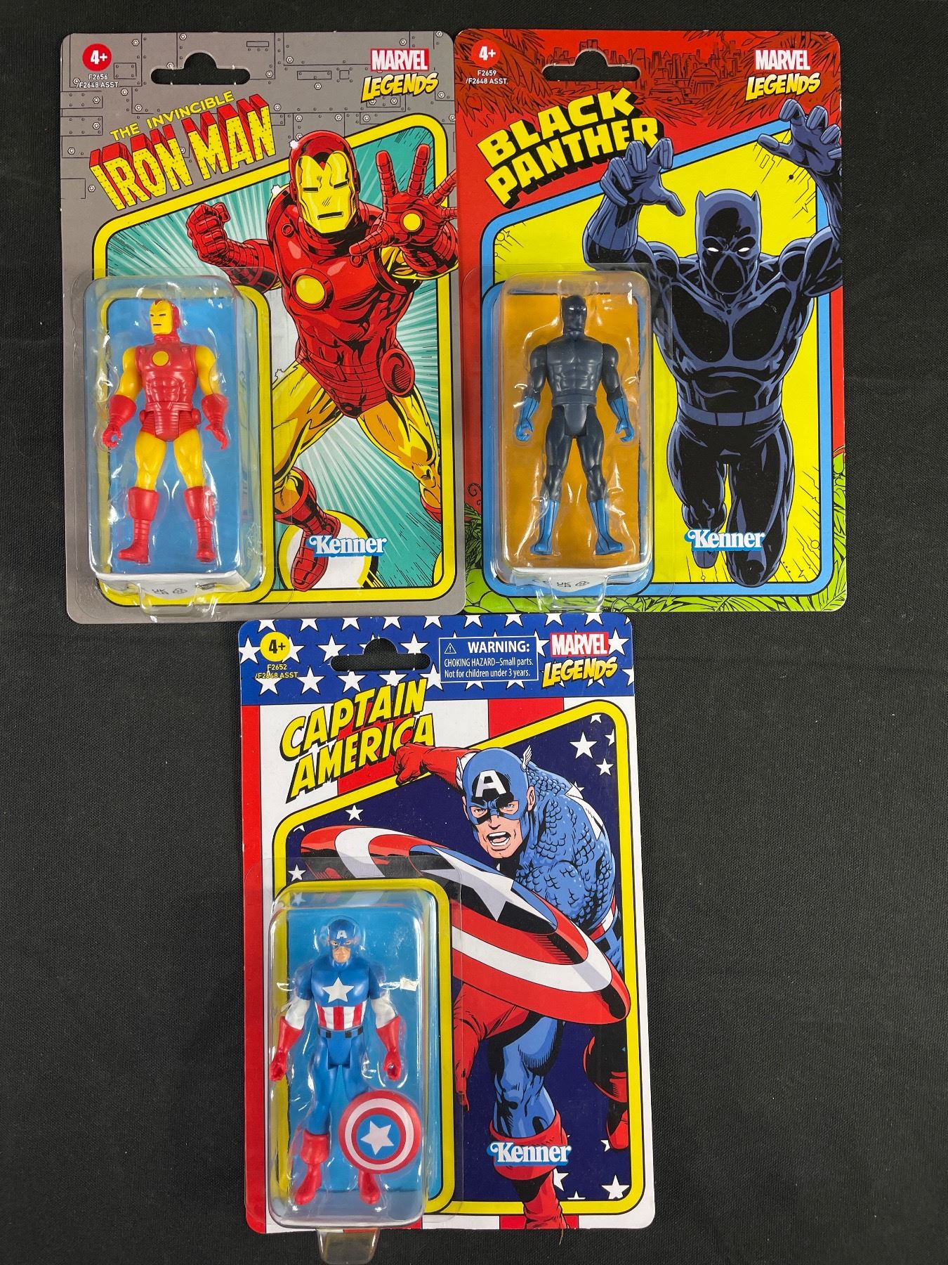 3 Kenner Marvel Legends Action Figures In Original Pkgs. -Iron Man, Black Panther & Masters Of The Universe Jitsu