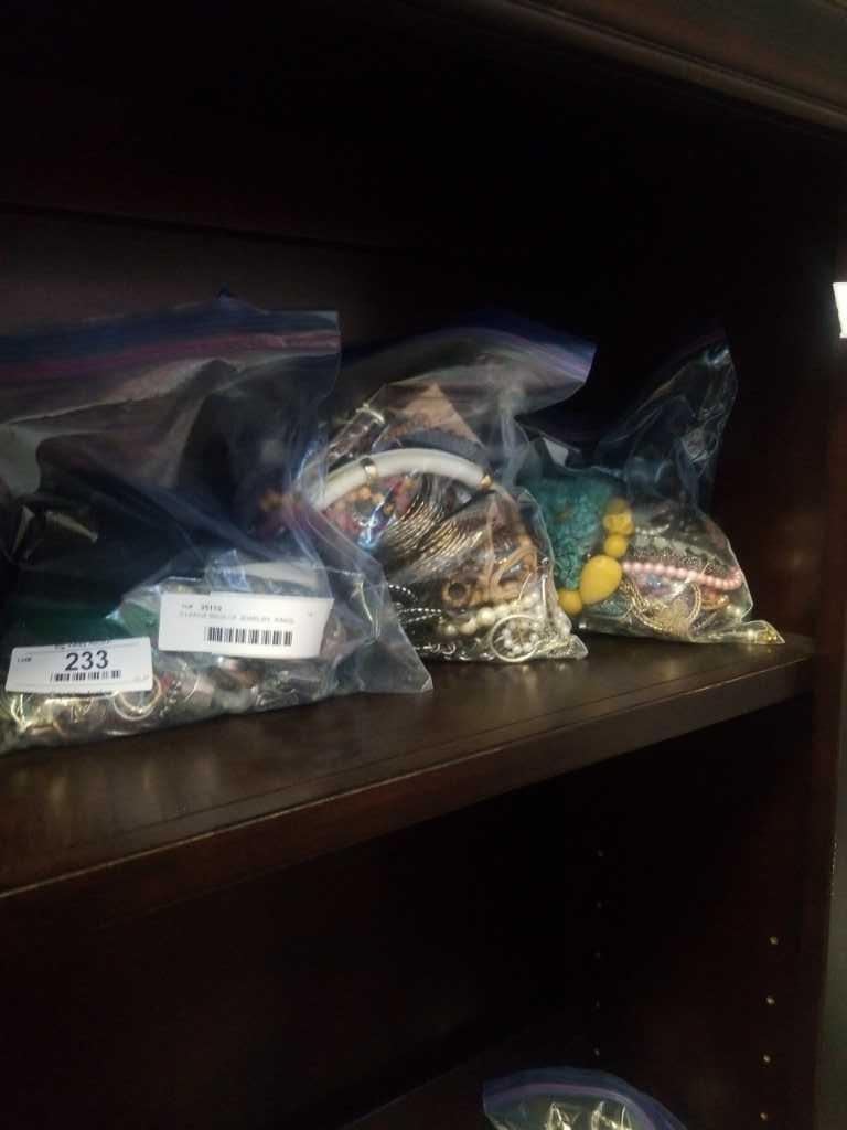 3 LARGE BAGS OF JEWELRY, RINGS, WATCHES