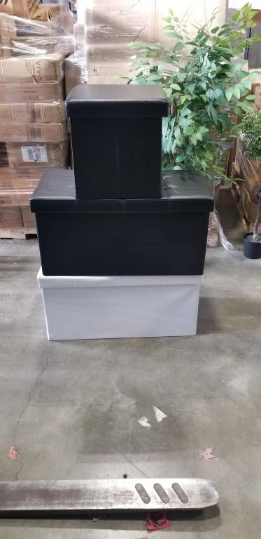 3 LEATHER STORAGE OTTOMANS, WITH BOARD GAMES