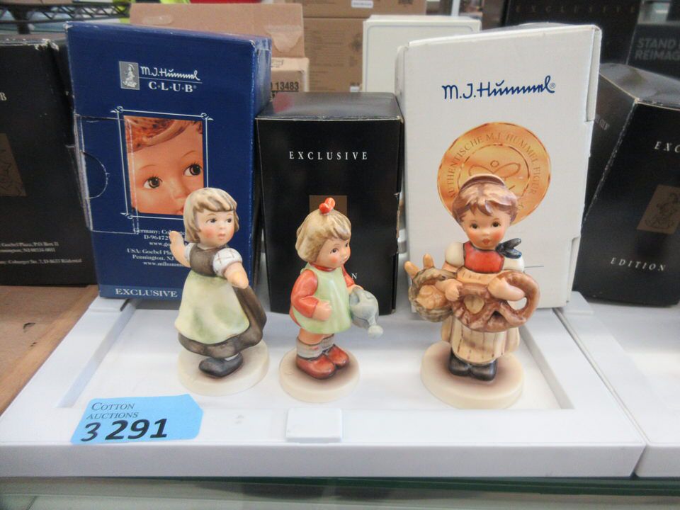 4" "Spring Waltz" #152521 Hum 912/B, 3 3/4" "Natures Girl" #1072 Hum 729, and 4 1/4" "Pretzel Girl" #1355 Hum 2004.