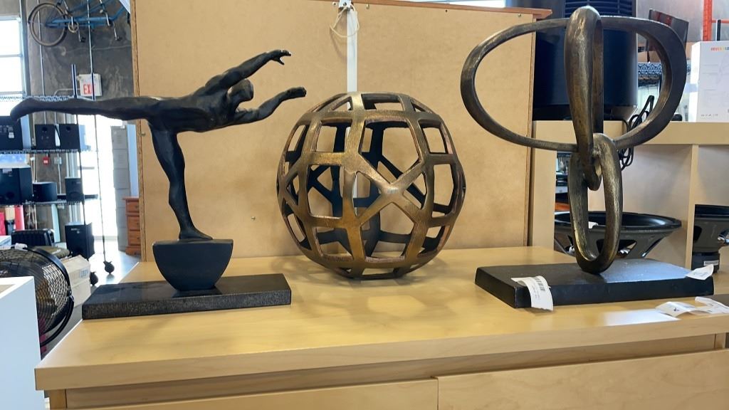 3 METAL DECORATIONS - MAN AND ABSTRACT