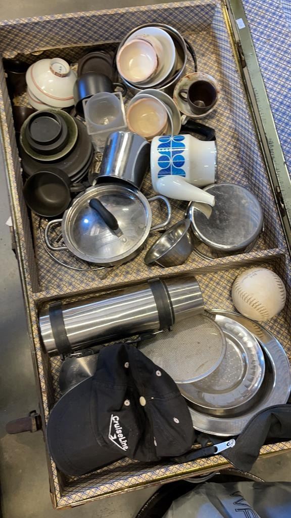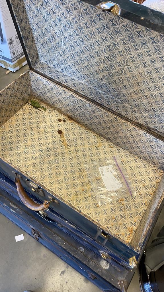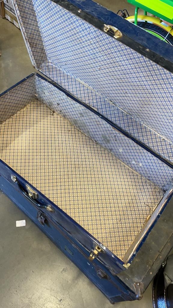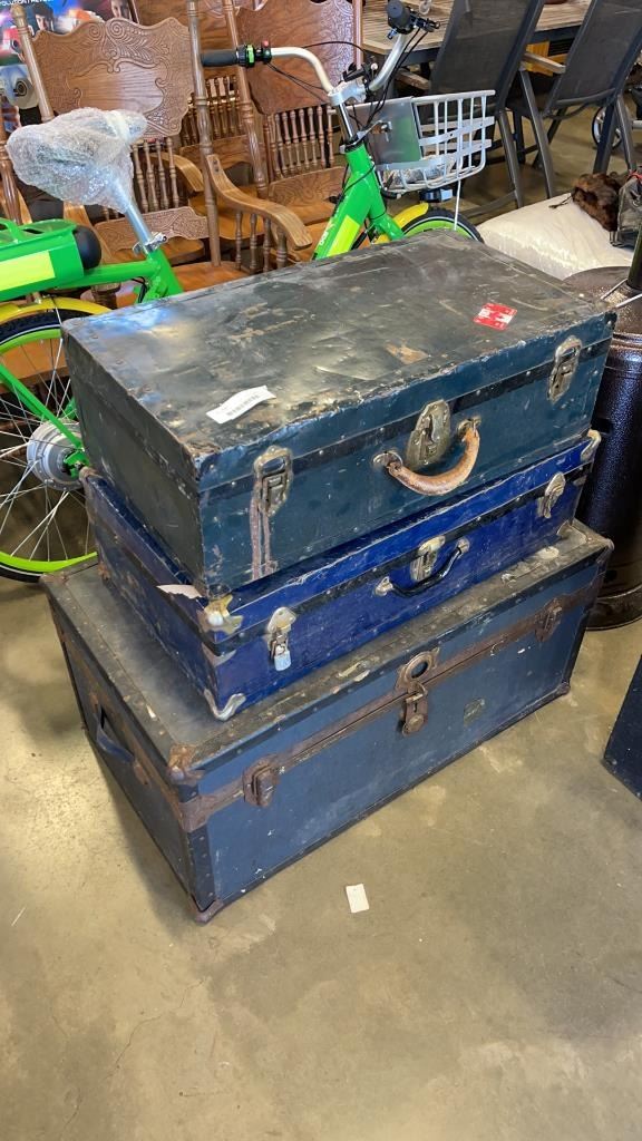 3 METAL STORAGE TRUNKS LARGE ONE WITH CONTENTS INCLUDED