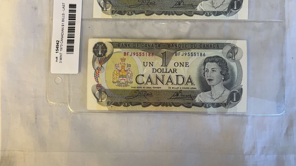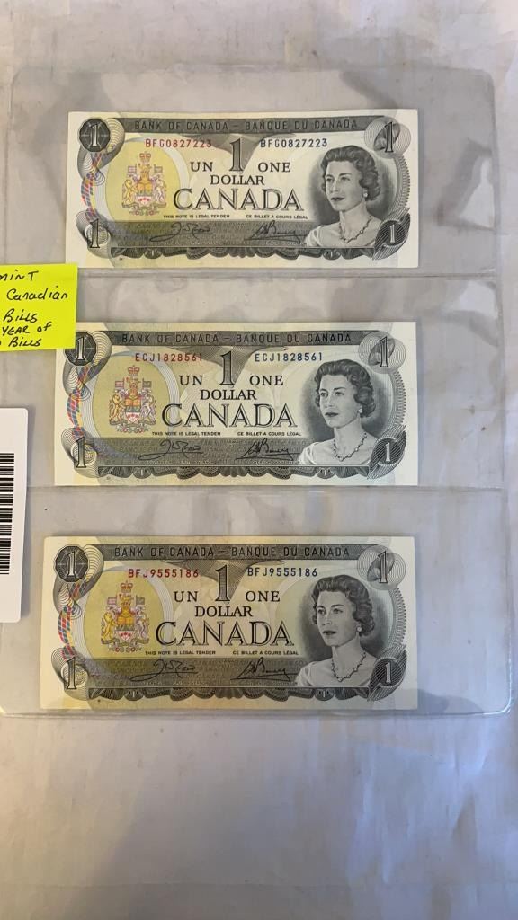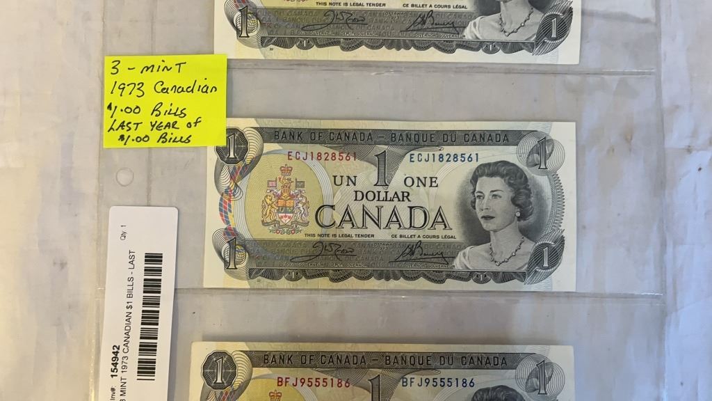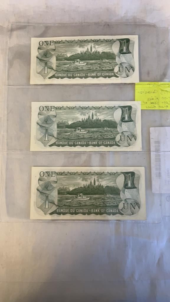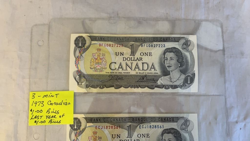 3 MINT 1973 CANADIAN $1 BILLS - LAST YEAR OF THE $1 BILL