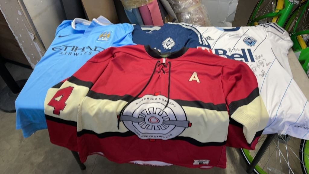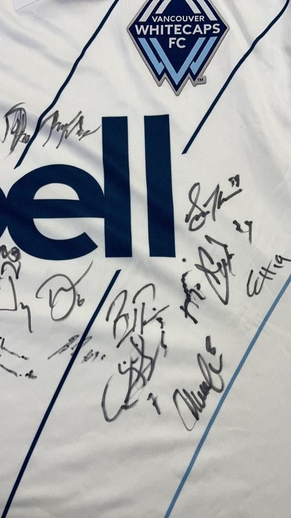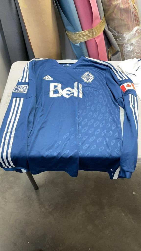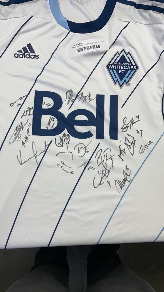 3 MLS SHIRTS 2 ARE WHITECAPS 1 IS AUTOGRAPHED AND JERSEY