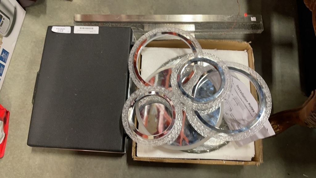 3 MODERN LED LIGHT FIXTURES -ONE VANITY, TWO HALLWAY- AND MCBRINE VINTAGE BRIEFCASE
