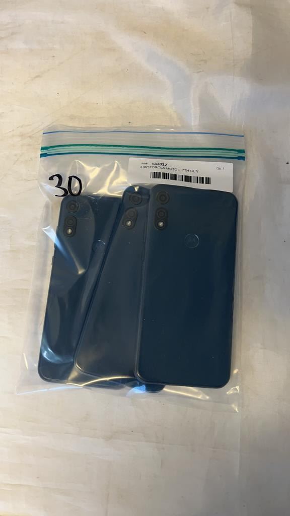 3 MOTOROLA MOTO E 7TH GEN SMARTPHONES - PARTS ONLY, NOT GUARANTEED TO WORK
