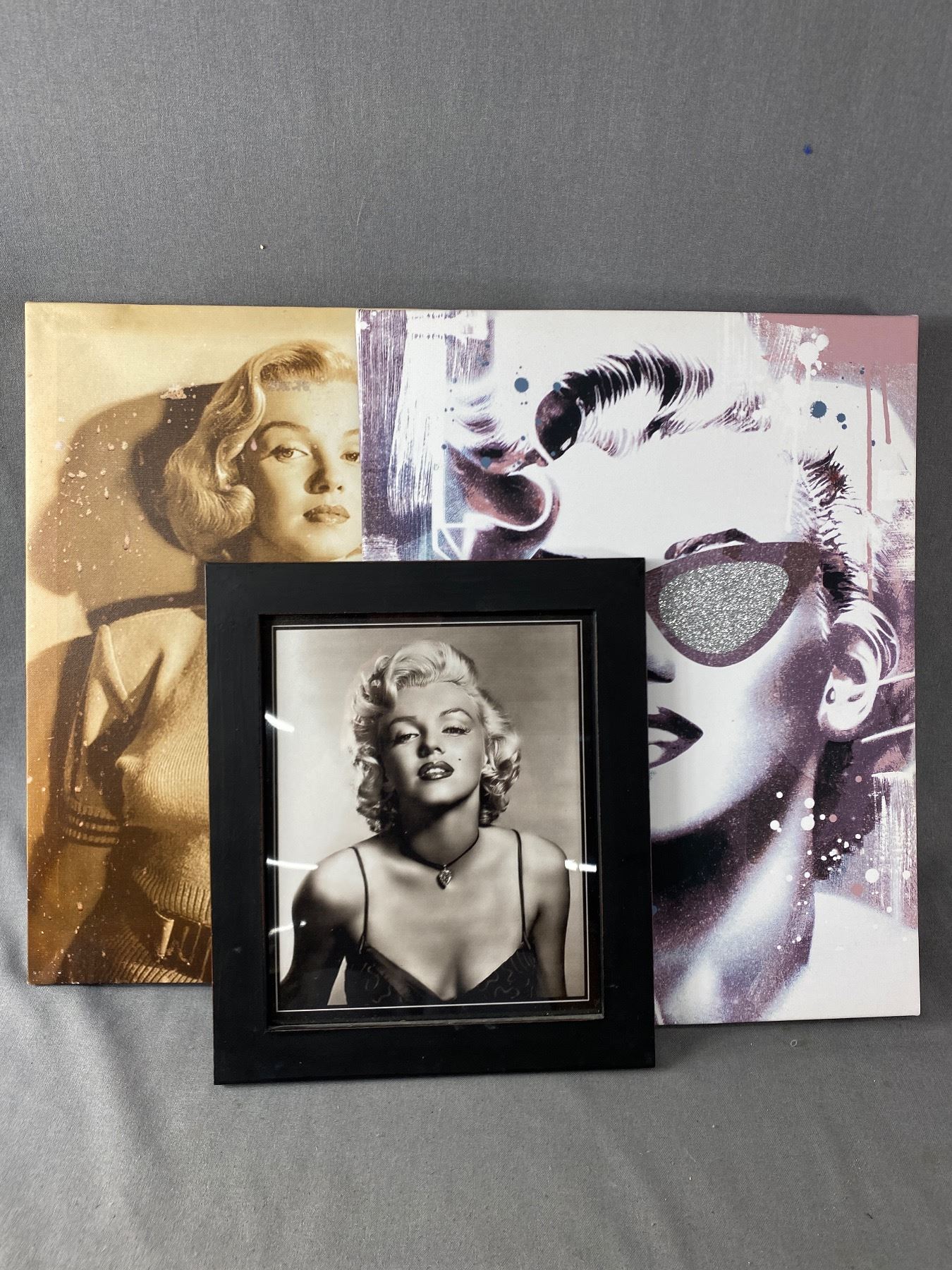 3 Marilyn Monroe Pictures, 2 Are On Canvas (Approx 20" x 15")