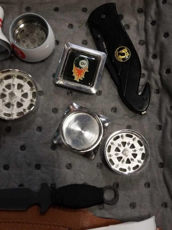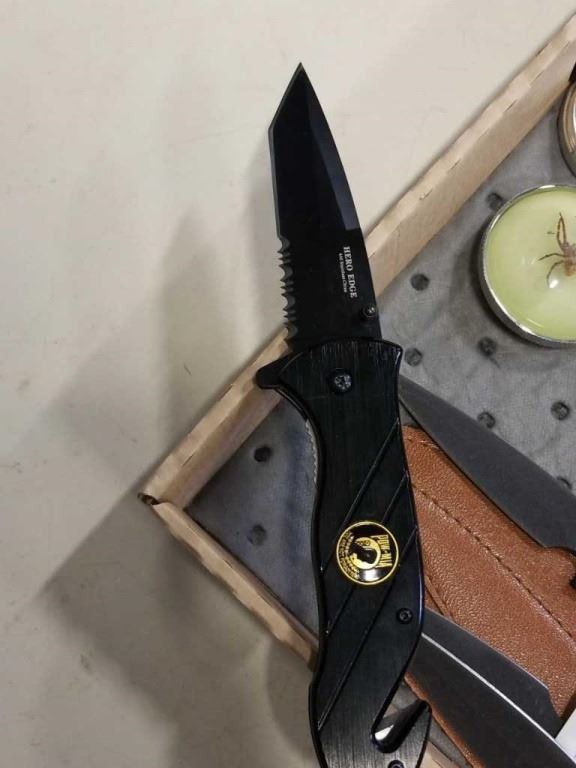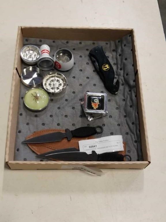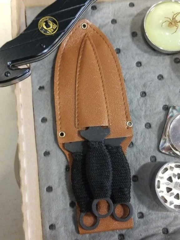 3 NEW 3 PIECE GRINDERS WITH POW MIA FOLDING KNIFE AND 3 THROWING KNIVES