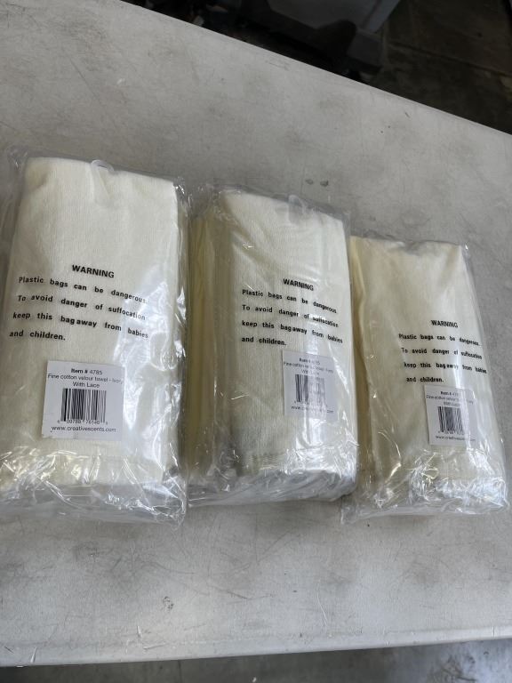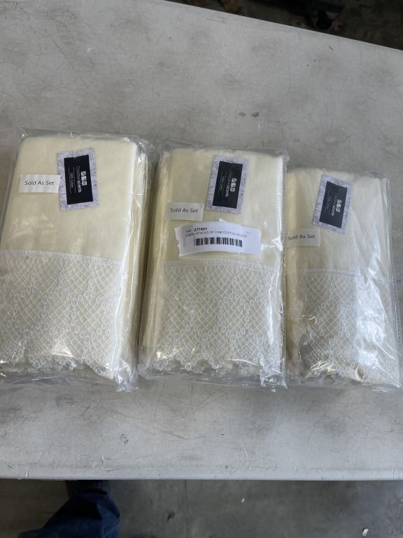 3 NEW 4PACKS OF FINE COTTON VELOUR TOWEL WITH LACE, IVORY