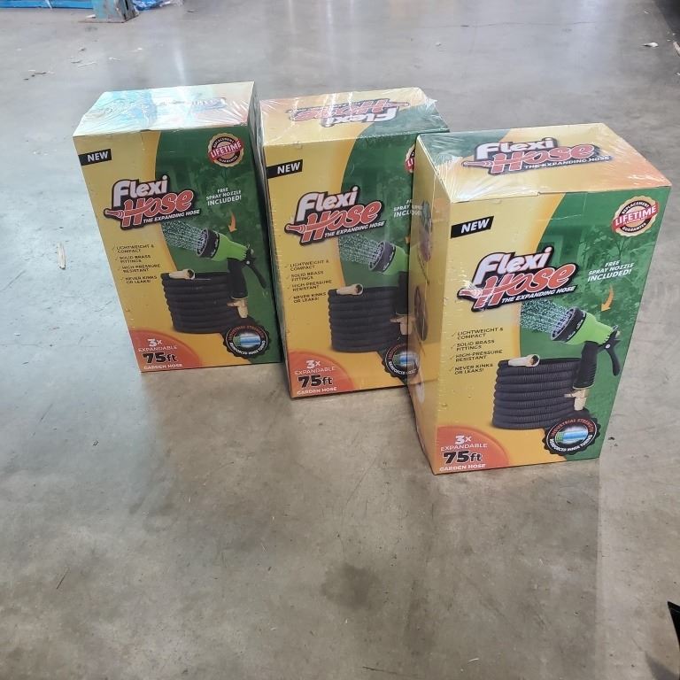 3 NEW 75' FLEXI HOSES WITH NOZZLE