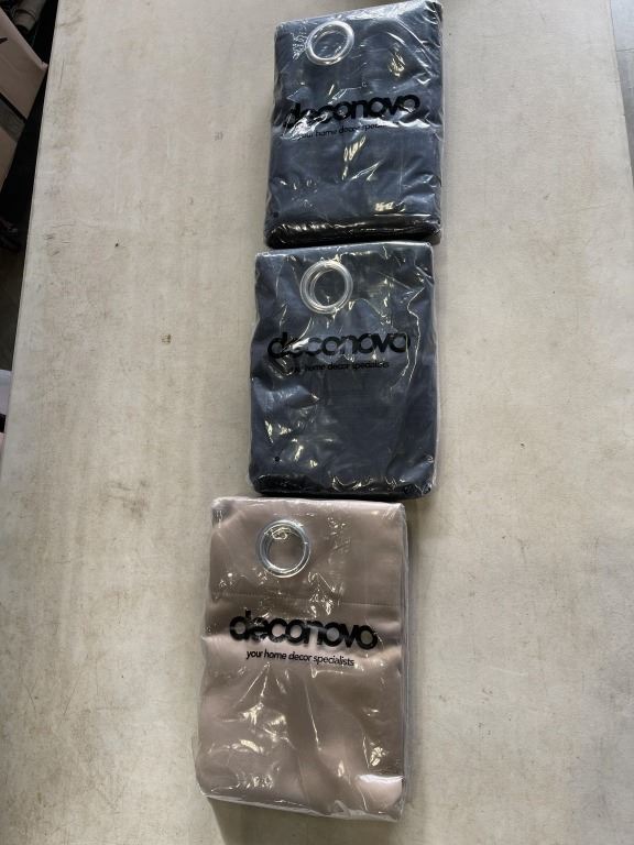 3 NEW BLACKOUT CURTAIN SETS, BLACK 52 X 95, BLACK 52X63 AND BEIGE 42X63