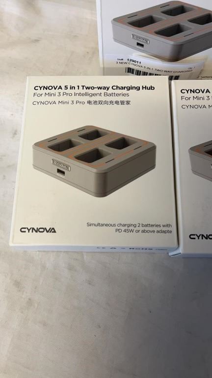 3 NEW DJI MINI 3 PRO BATTERY CHARGERS, 4 PORT 2-WAY FAST CHARGING HUB - CYNOVA BRAND RETAIL $49 EACH, TOTAL $147