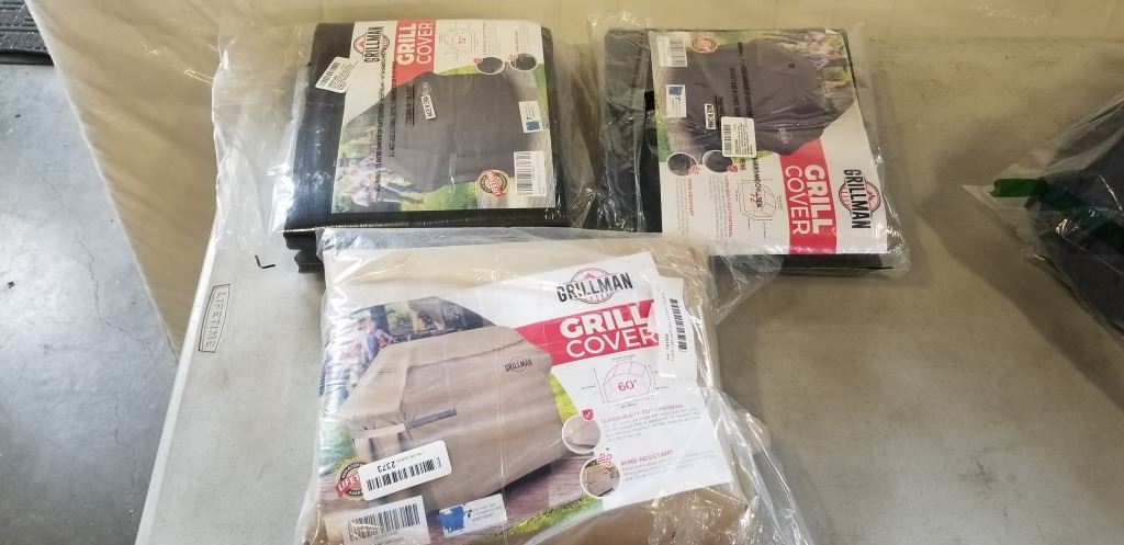 3 NEW GRILLMAN BBQ COVERS, 2 BLACK AND 1 BROWN