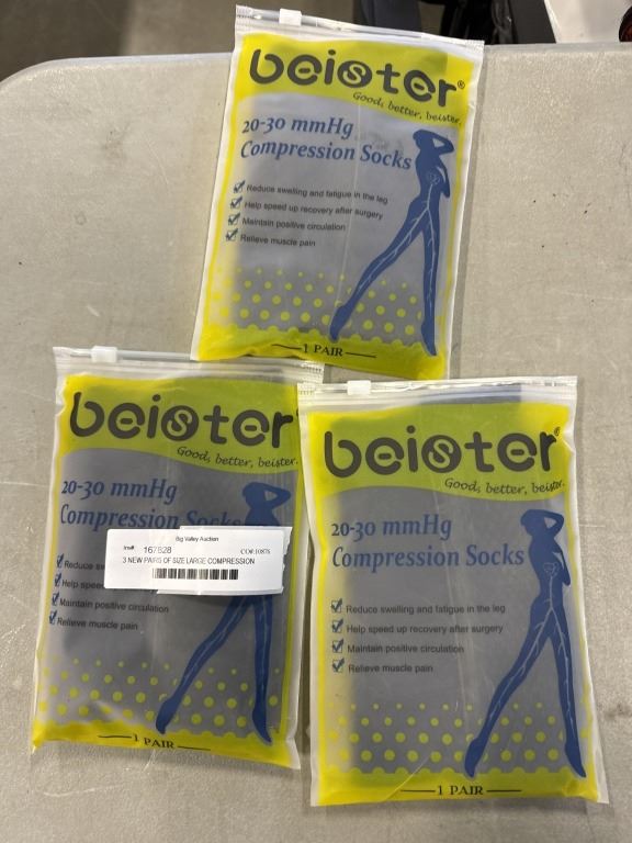 3 NEW PAIRS OF SIZE LARGE COMPRESSION SOCKS