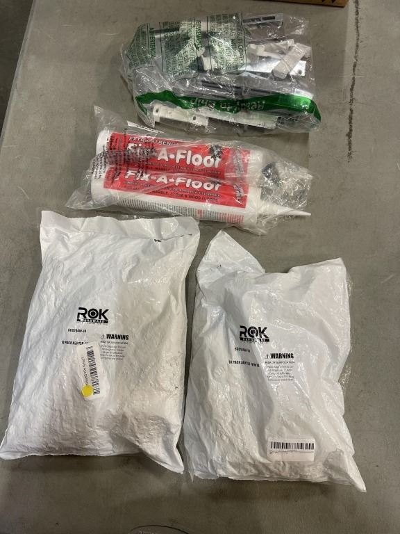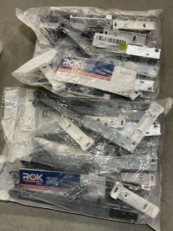 3 NEW ROK HARDWARE 10PK SOFT CLOSE DRAWER KITS, AND 2 FIX A FLOOR ADHESIVE