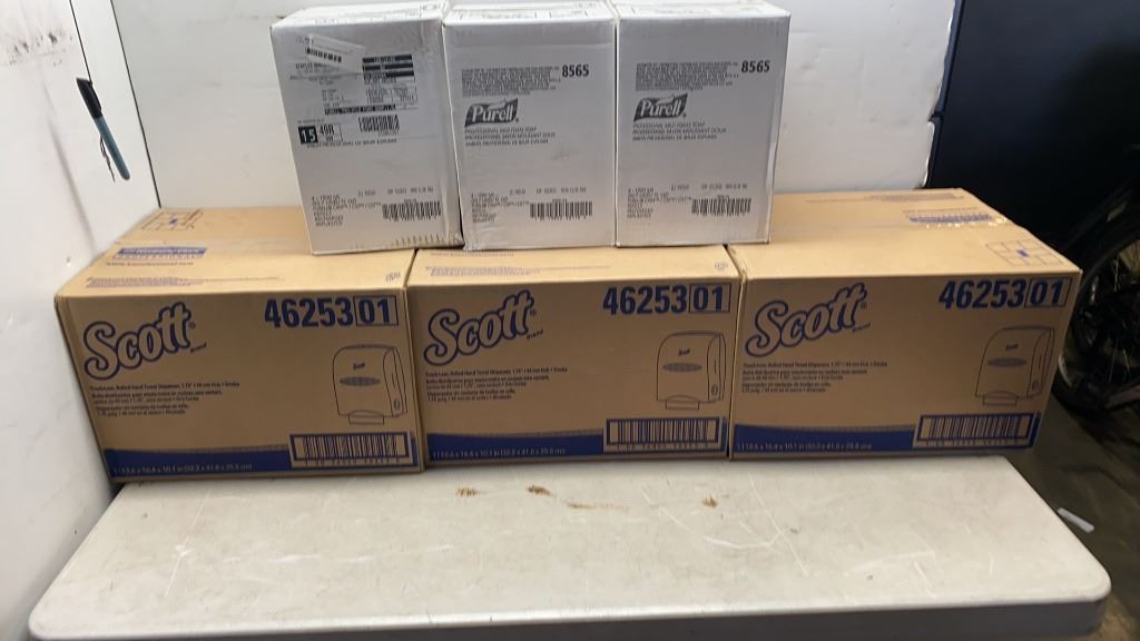 3 NEW SCOTT TOWEL DISPENSERS AND 3 BOXES OF NEW MILD FOAM SOAP
