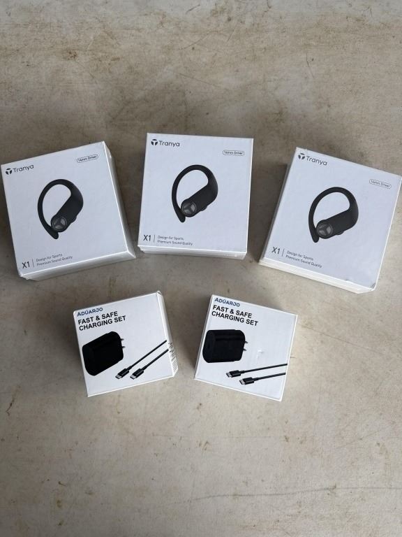 3 NEW TRANYA X1 SPORTS HEADPHONES, AND 2 NEW USB TYPE C CHARGER 2PACKS
