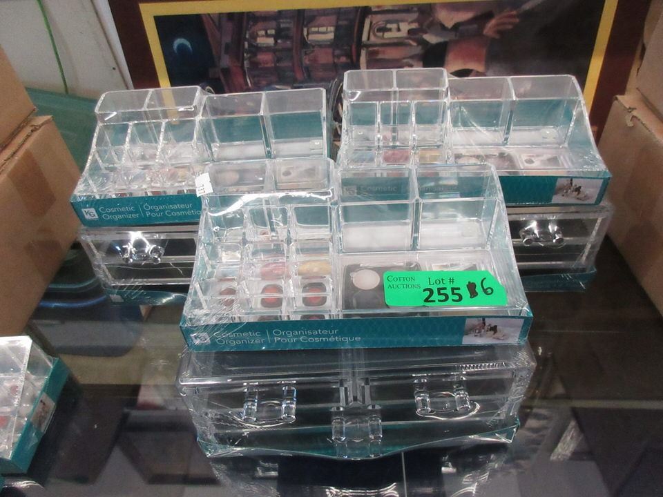 Each set has a 4 drawer organizer topped with lipstick/ makeup tray. Total dimension is 5" x 10" x 7" tall.