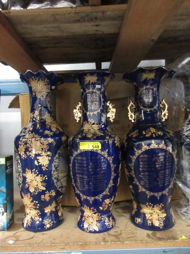 3 New Blue Glazed Vases - 23" Tall x 8" Diameter