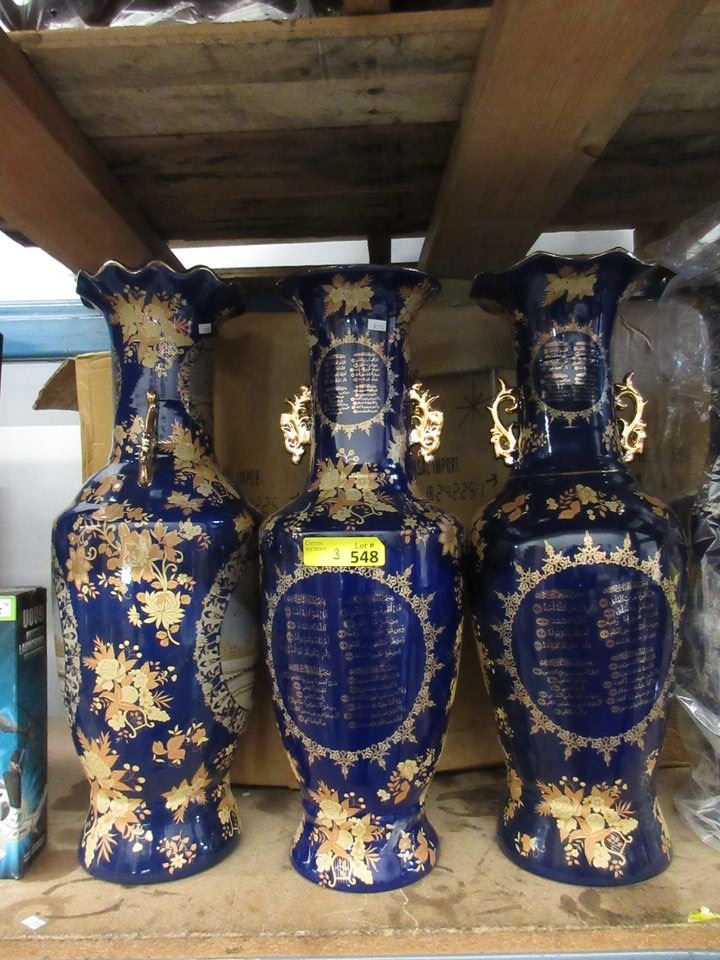 3 New Blue Glazed Vases - 23" Tall x 8" Diameter