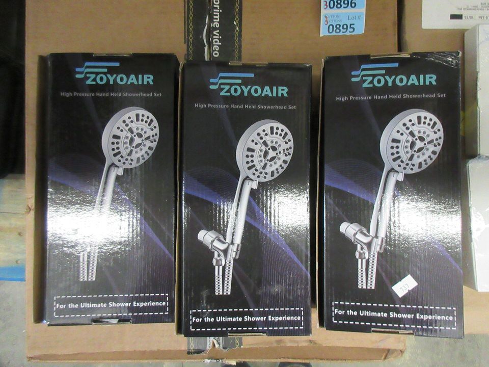 5" wide shower heads. Includes hoses.