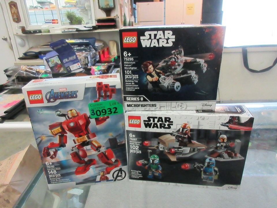 102 Pc. #75267 Star Wars Mandalorian Battle Pack, 101 Pc. #75295 Star Wars Microfighter, and 148 Pc. #76140 Iron Man Mech.